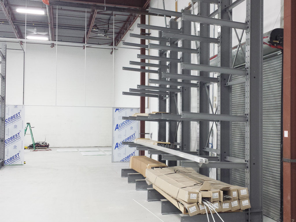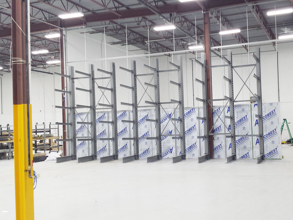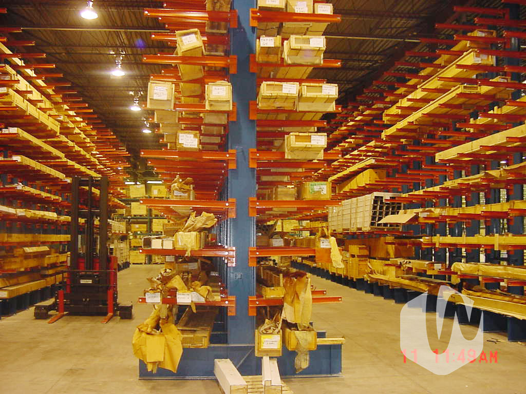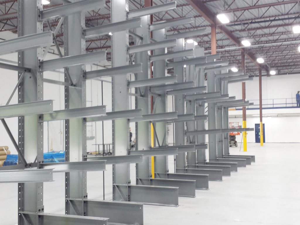 Cantilever racking is capable of storing bulky loads of varying length and cubic dimensions. Ideally suited for the storage of pipes, lumber and other long loads, when properly configured, cantilever racking can easily and safely store oddly configured product. Specialized equipment is not necessary however specialized equipment is available that can help increase storage by up to 50%.